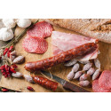 Selezione dei migliori prodotti di maiale iberico magro che dopo essere stati tritati, vengono marinati con le migliori spezie e farciti in budello naturale selezionato (cular), con una stagionatura tra i 4 e i 6 mesi con le arie uniche di Guijuelo, dando vita a un prodotto naturale, consistenza fine e squisito sapore morbido e naturale. Essendo il Lomo e il Chorizo fumati con carbone di quercia. Un sapore e un aroma delicato nella salsiccia fornita dalla macerazione di Porto Vino. Conservanti minimi e quantità minima di grassi. Ingredienti - LOMO: lombo di maiale, sale, paprika, destrina, destrosio, zucchero, aglio, origano, conservanti E-252 ed E-250. Non contiene glutine. CHORIZO: 100% carne di maiale iberico e grasso, sale, paprica, aglio, origano, latte in polvere, destrina, destrosio, emulsionanti: E-450i, E-452i; zucchero, antiossidanti: E-301, E-325, E-331iii; conservanti: E-252, E-250; colorazione: E-120. SALCHICHON: 100% carne di maiale iberico e grasso, sale, destrina, latte in polvere, destrosio, zucchero, emulsionanti: E-451ii, E-452i, E-450i; antiossidanti: E-331iii, E-301; spezie, conservanti: E-252, E-250; esaltatore di sapidità: E-627, E-631; colorazione: E-120; pepe, vino porto.